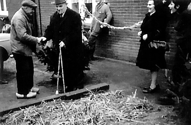(00567) Overbuurman Meys brengt de gelukwensen over aan Thei Vermeulen (1908-1963) en Tilla Vermeulen-Hanssen (1912-1988)