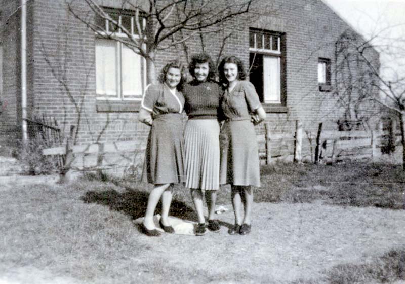 (06603) Dames poseren voor het huis van familie Claessen, later familie Loyen op de Haelerweg (1950)