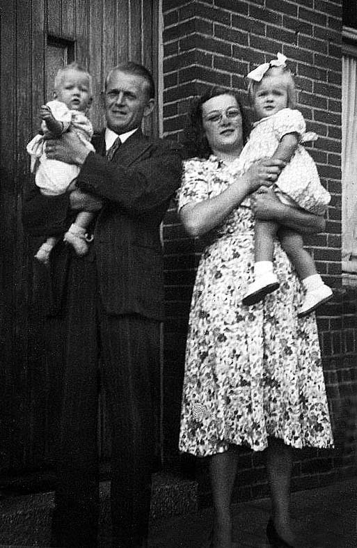 (00137) Albert Giebels (1917-1980) en Claar Seems (1924-2011) van de Oude Weerterweg met hun kinderen Gonnie en Piet