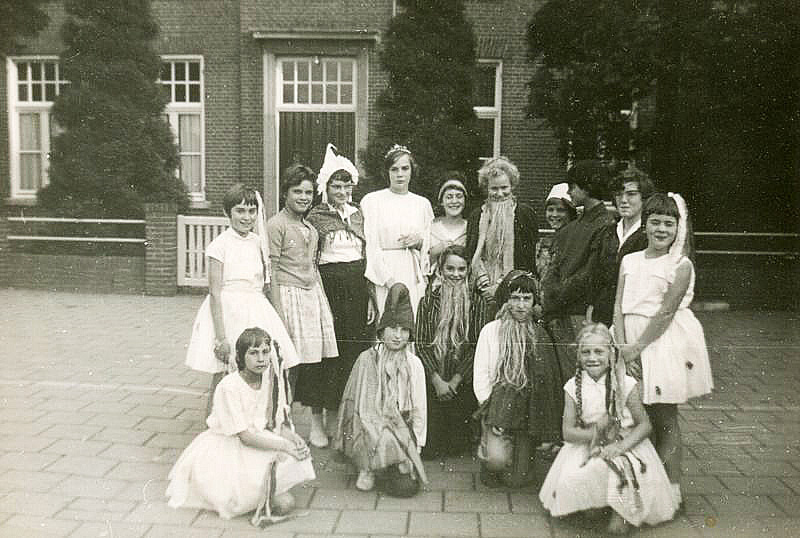 (03822) Een groepsfoto op de speelplaats van de Mariaschool (1962)