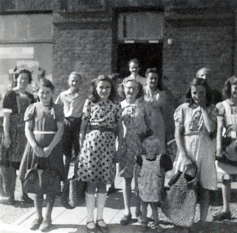 (06342) Tijdens en na de Tweede Wereldoorlog bestond in Nederland distributie, waarbij allerlei voedingsmiddelen “op de bon” waren. Bij de winkel van Piet Spee op de Hoogstraat was het dan een drukte van jewelste bij het inleveren hiervan. (rond 1945)