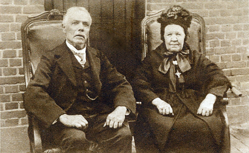 (08763) Het echtpaar Jan Hubert Theeven (1854-1948) en Hendrina Hubertina Claessen (1853-1944) vieren hun Gouden Huwelijk (rond 1934)