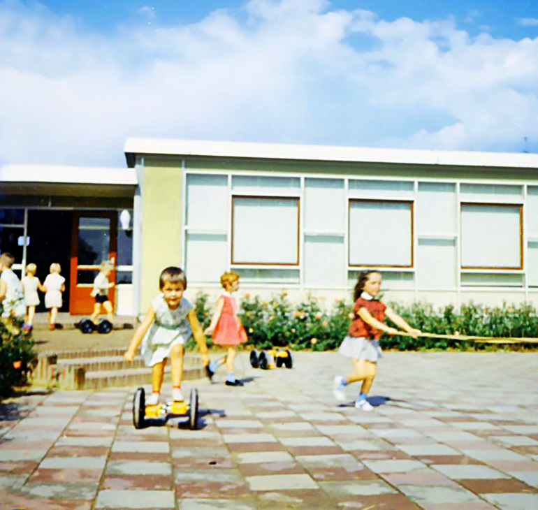 (13686) Op de speelplaats van kleuterschool ’t Kwetternest op de Mussenberg (1964)