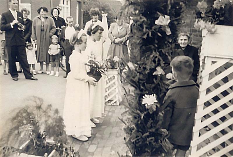 (01002) De broertjes Teeuwen gaan op Palmzondag naar de kerk (rond 1960)