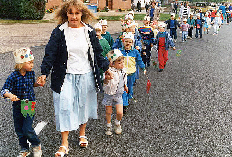 (05367) Een optocht ter gelegenheid van het afscheid van Burgemeester Karel van Gerven (25 juni 1986)