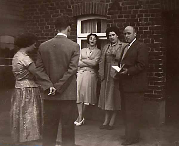 (02809 A) Een feestje bij Caris in ‘t Brook (1956) met v.l.n.r.: Käthe Caris-Mevihsen, Els Caris-Bardie en Harrie Caris (de witte)