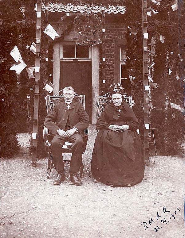 (07859) Gouden Bruidspaar (21 april 1903) Martinus Barten (1823-1906) en Anna Cornelissen (1831-1906) uit de Weerd, een bijzonderheid in die tijd! Foto gesigneerd met R M d H (Robert Magnée de Horn)