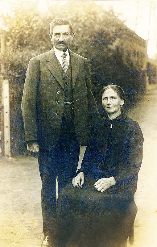 (10551) Mathis Hubert Teven (1866-1938) en Agnes Neelen (1873-1958) (getrouwd op 18 oktober 1901) op Beurik 3 in Horn. Huis dat zichtbaar is is het huis van Smeets-Demarteau