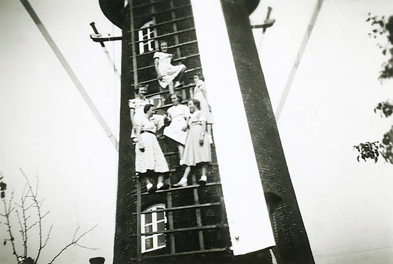 (00154) Café Kelderke van familie Seems in de Dorpstraat met v.l.n.r.: Gerda Janssen, Miep Seems, Mia Hammes, Gonnie Giebels en Tiel Seems